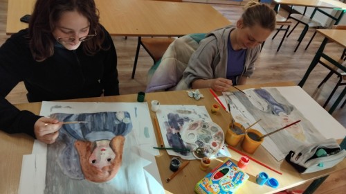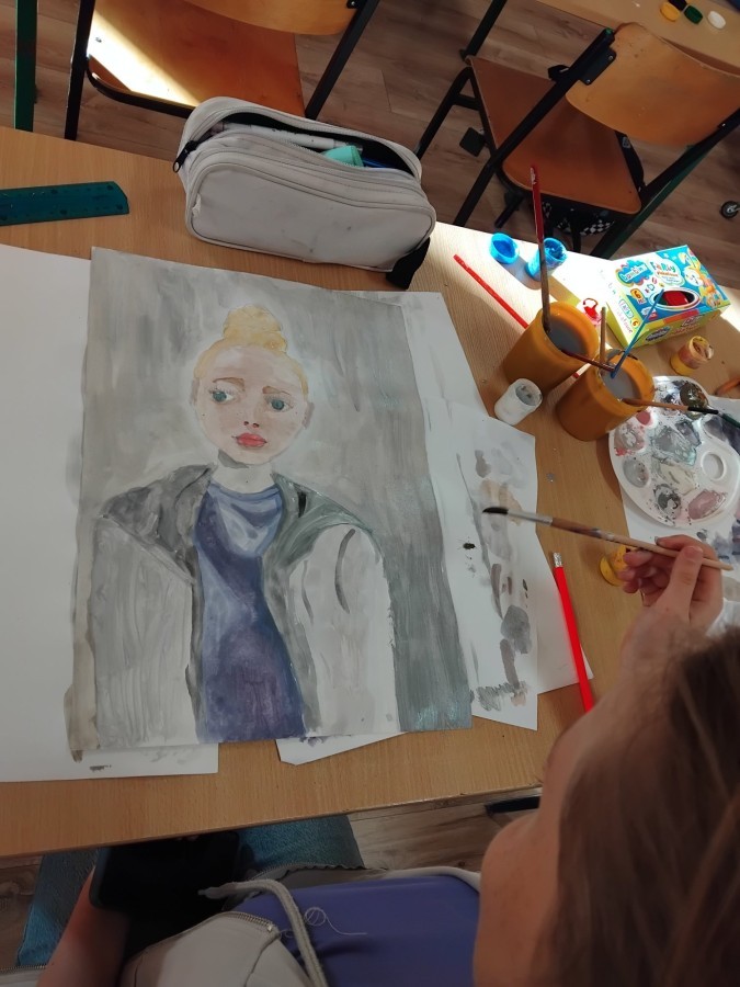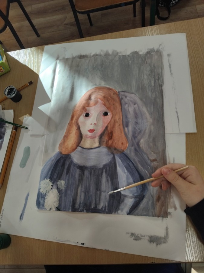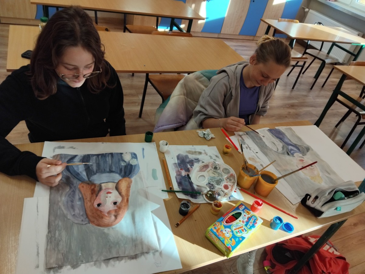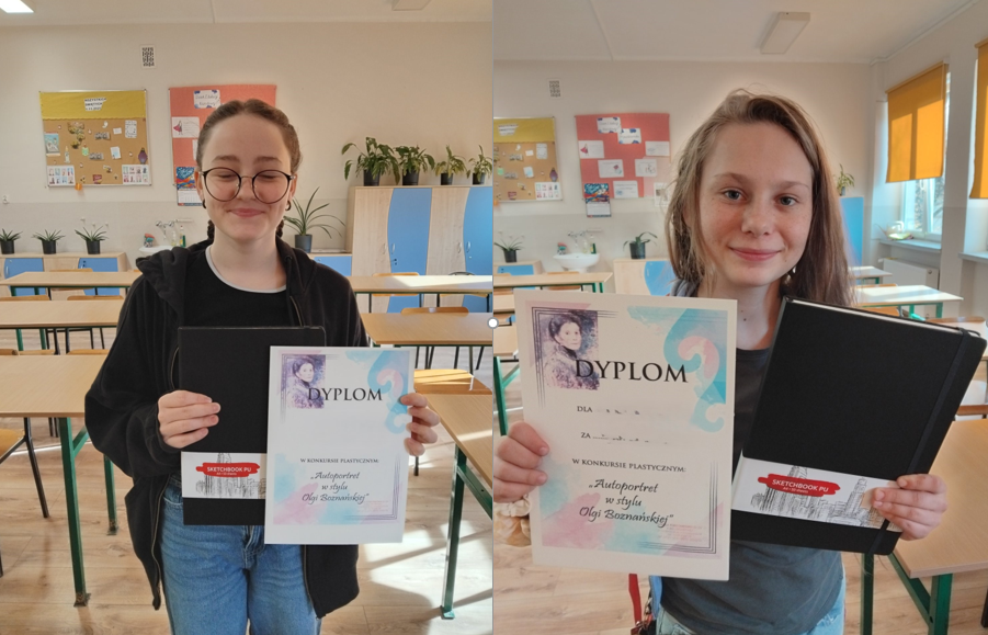 Uczennice klas szóstych, w ramach odbywającego się w każdą ostatnią środę miesiąca koła plastycznego, wykonały prace na konkurs "Autoportret w stylu Olgi Boznańskiej". Dziewczyny malowały portrety używając palety kolorów artystki, mieszały farby tworząc barwy złamane z odcieniami szarości. Uczestniczki konkursu otrzymały dyplomy z wyróżnieniem oraz podarunek w formie szkicownika. Koło prowadzi Pani Ewa Iskrzycka.
