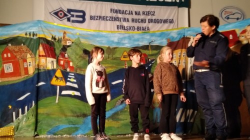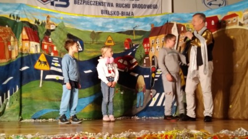 i Ogólnokształcących w Bielsku-Białej. Podczas imprezy uczniowie przypomnieli sobie wszystkie istotne zasady obowiązujące pieszych uczestniczących w ruchu drogowym. Obejrzeli pokaz mody propagujący odpowiednią widoczność na drodze, przygotowany przez młodzież z tamtejszej szkoły