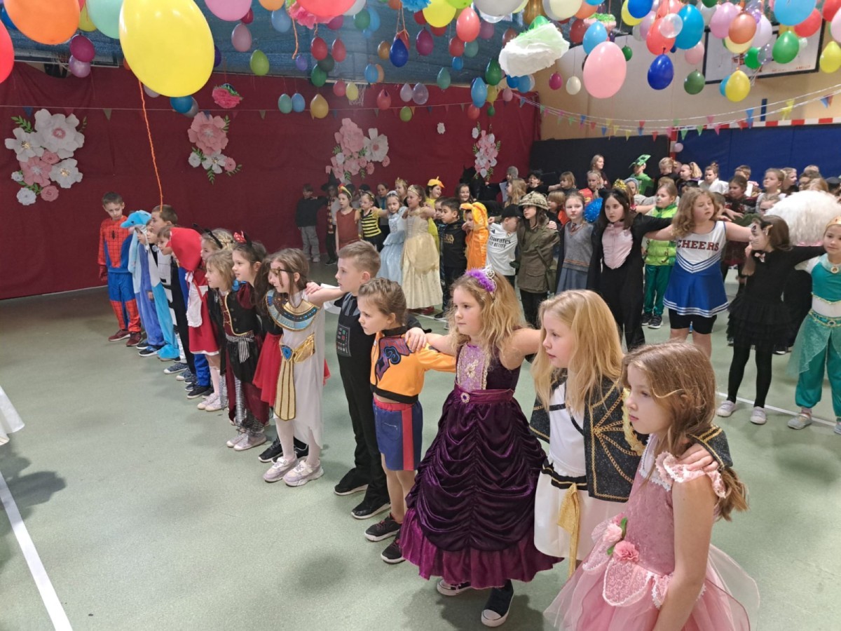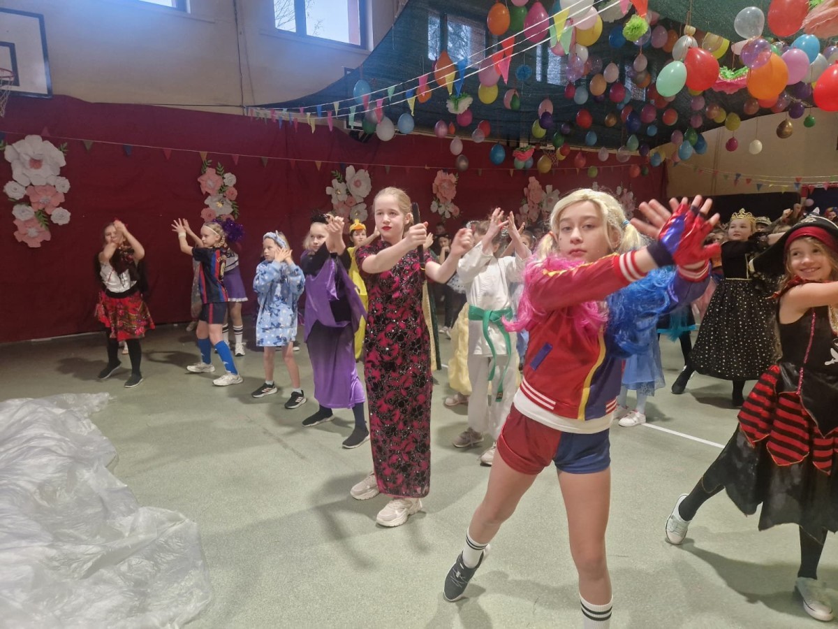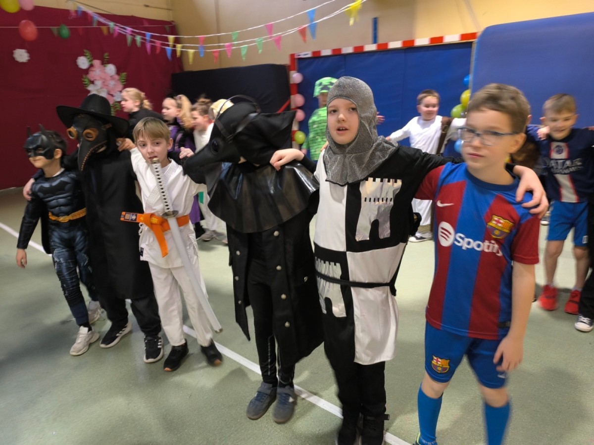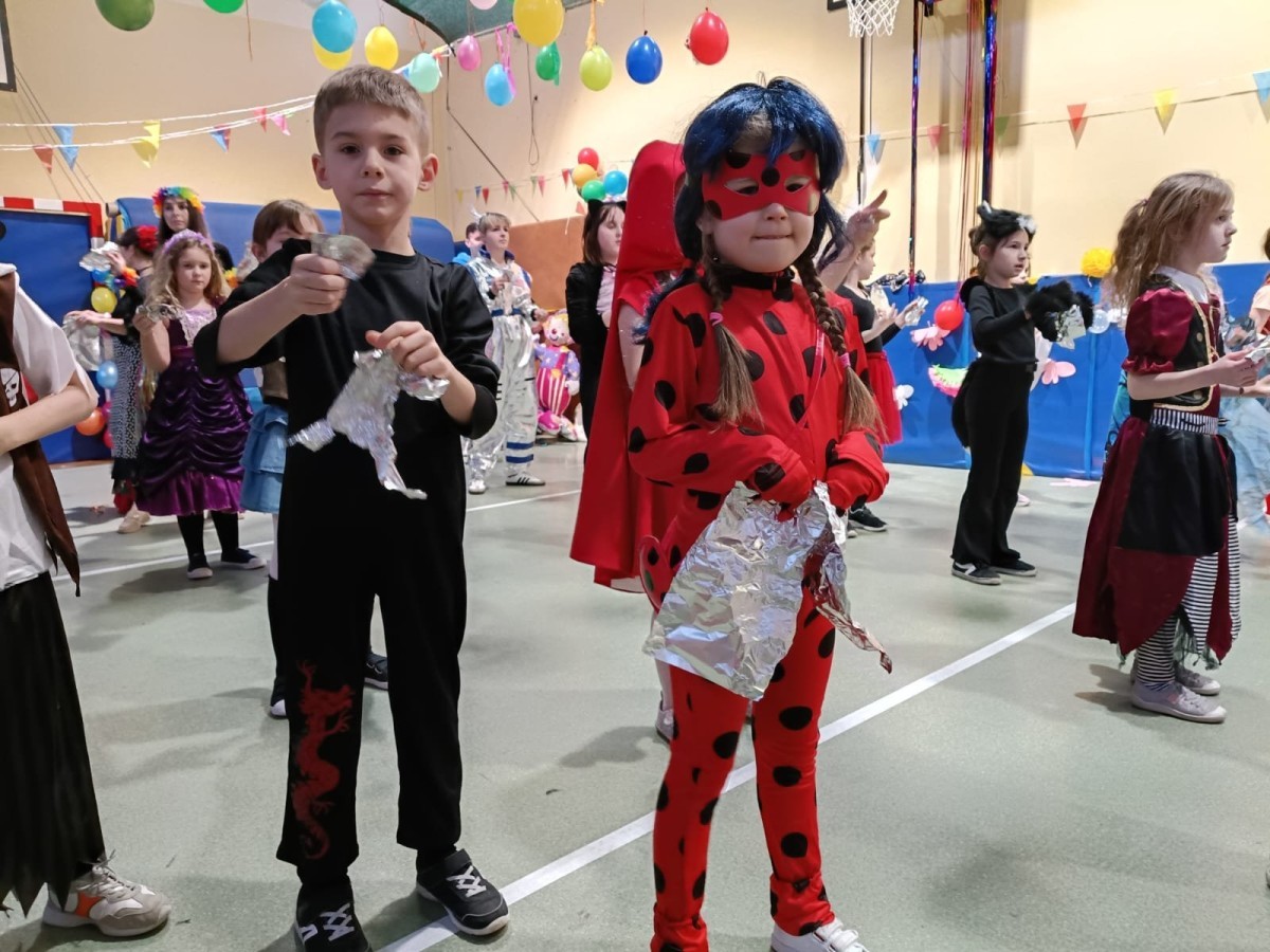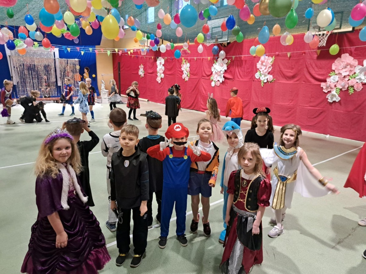 Karnawał zgodnie z tradycją to czas zabaw, balów maskowych , radości i wspólnej rozrywki. W naszej szkole również dochowano wierności tradycji i w dniu 03.02.2026r. odbył się Bal Karnawałowy dla uczniów klas I-III. W tym dniu sala gimnastyczna zamieniła się w zaczarowaną krainę pełną wróżek, czarodziejów, księżniczek, superbohaterów i innych barwnych postaci. Podczas balu nie zabrakło tańców, gier i zabaw integracyjnych. Wspólna zabawa przy muzyce stworzyła pełną radości, ciepłą atmosferę i dostarczyła uczniom wielu niezapomnianych wrażeń.