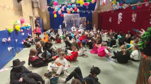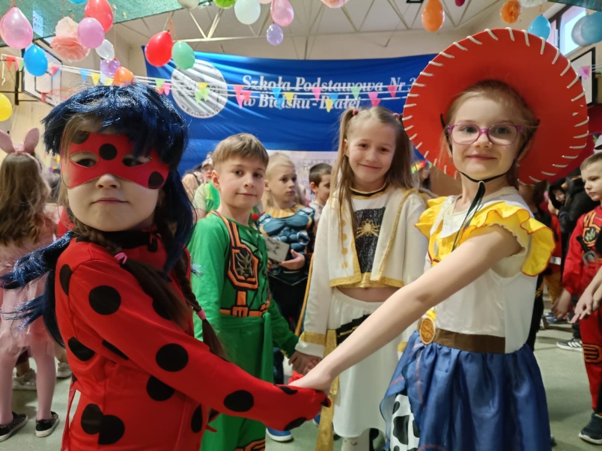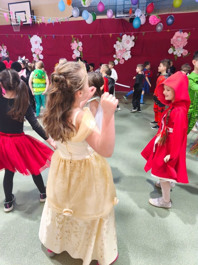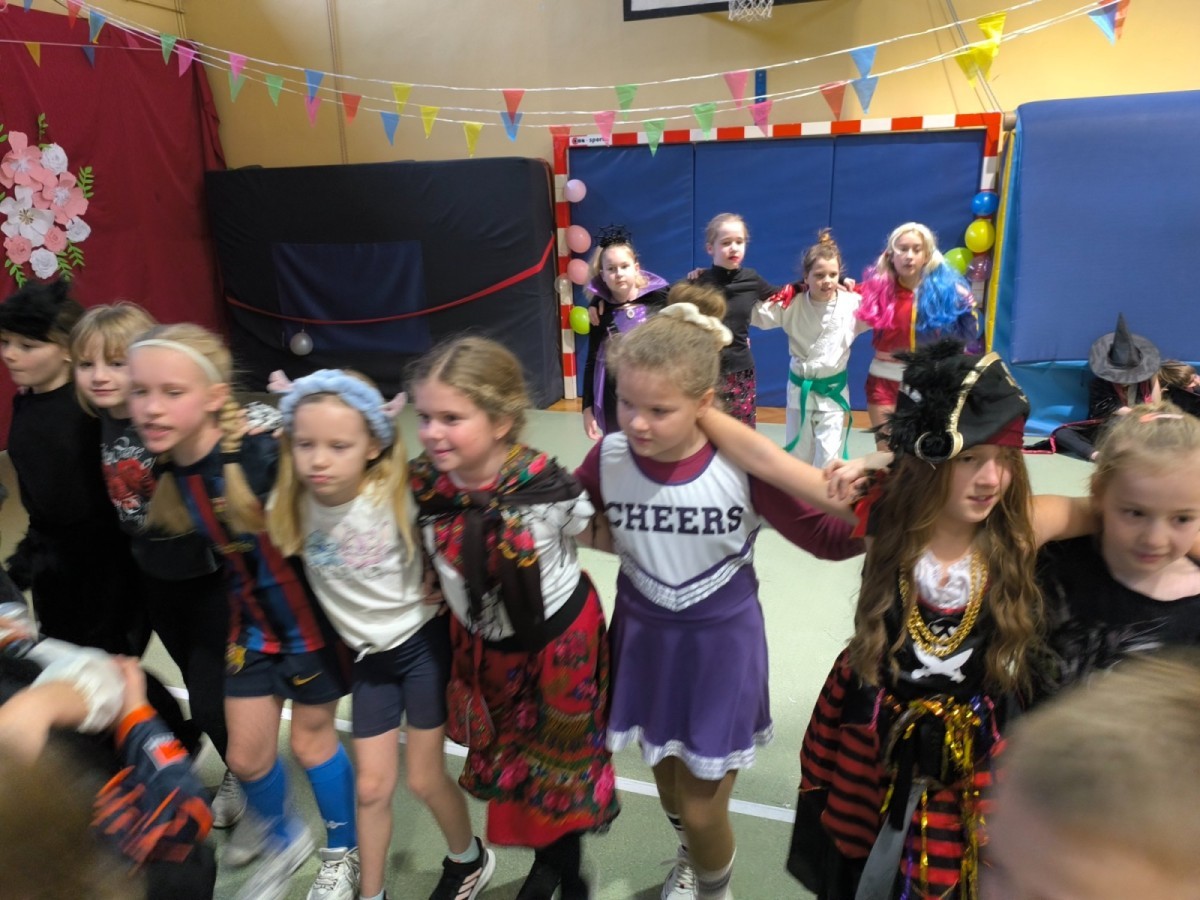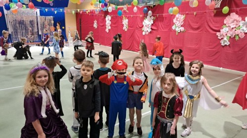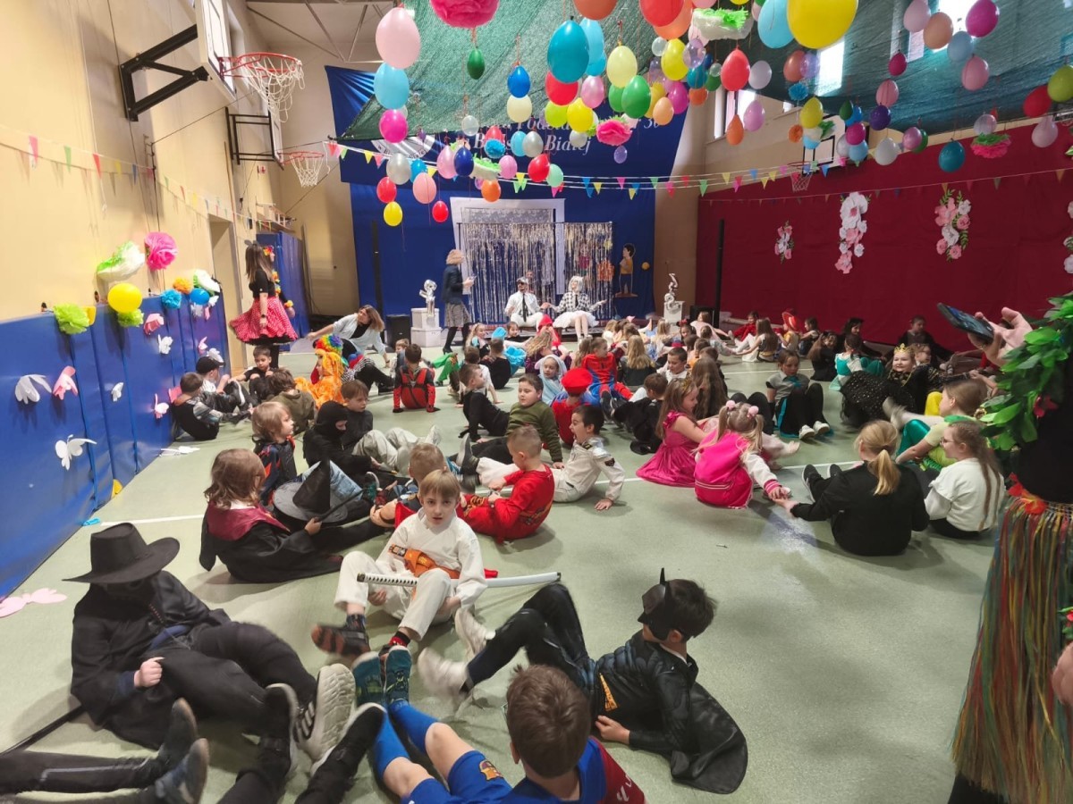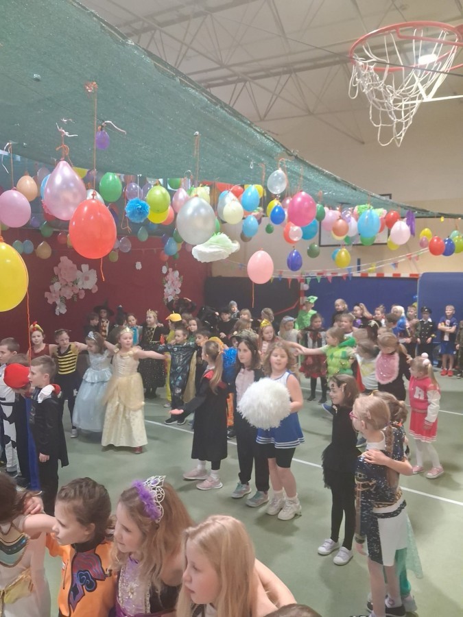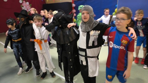 Karnawał zgodnie z tradycją to czas zabaw, balów maskowych , radości i wspólnej rozrywki. W naszej szkole również dochowano wierności tradycji i w dniu 03.02.2026r. odbył się Bal Karnawałowy dla uczniów klas I-III. W tym dniu sala gimnastyczna zamieniła się w zaczarowaną krainę pełną wróżek, czarodziejów, księżniczek, superbohaterów i innych barwnych postaci. Podczas balu nie zabrakło tańców, gier i zabaw integracyjnych. Wspólna zabawa przy muzyce stworzyła pełną radości, ciepłą atmosferę i dostarczyła uczniom wielu niezapomnianych wrażeń.