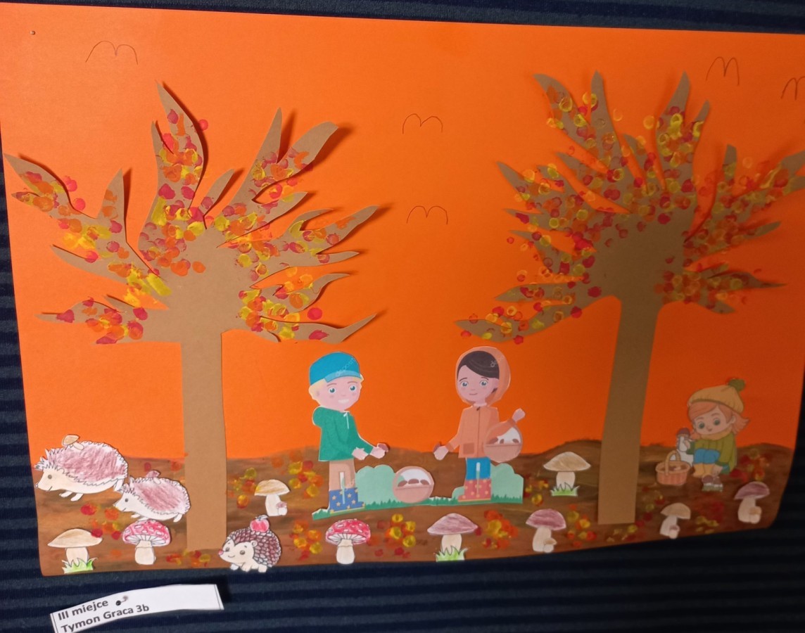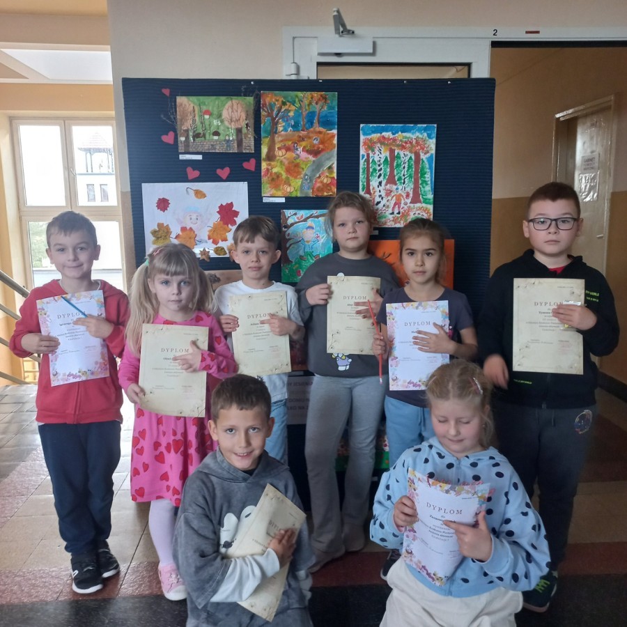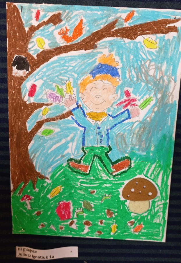 Został rozstrzygnięty Szkolny Konkurs Plastyczny dla klas 1-3 zachęcający do jesiennej aktywności na zewnątrz, bez względu na pogodę.