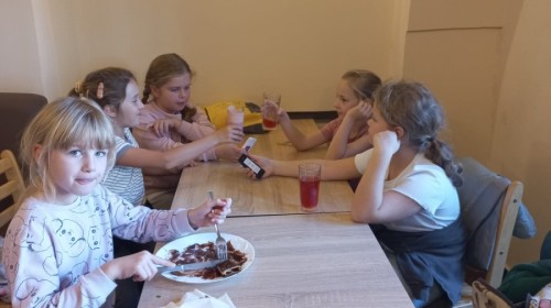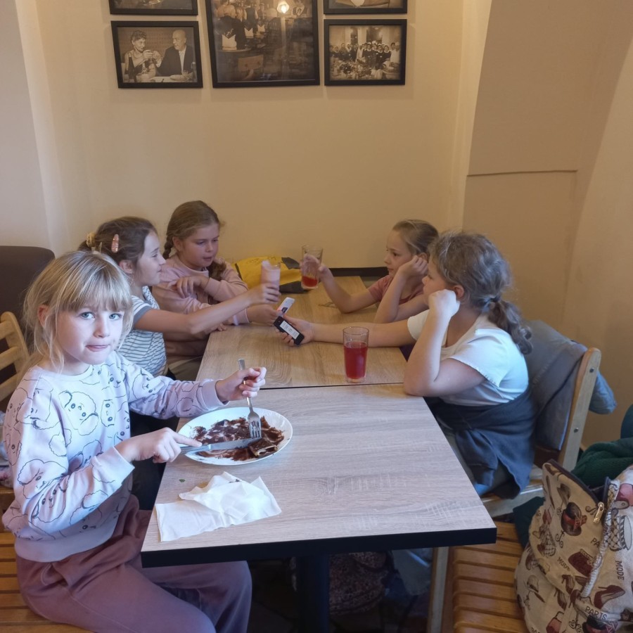 Po zwiedzaniu udali się do Baru Mlecznego "Pierożek", aby zasmakować pysznych klusek na parze czy naleśników. Objedzeni jak bąki wrócili do szkoły. Pogoda dopisała, humory również, więc wycieczkę miło będą wspominać.
