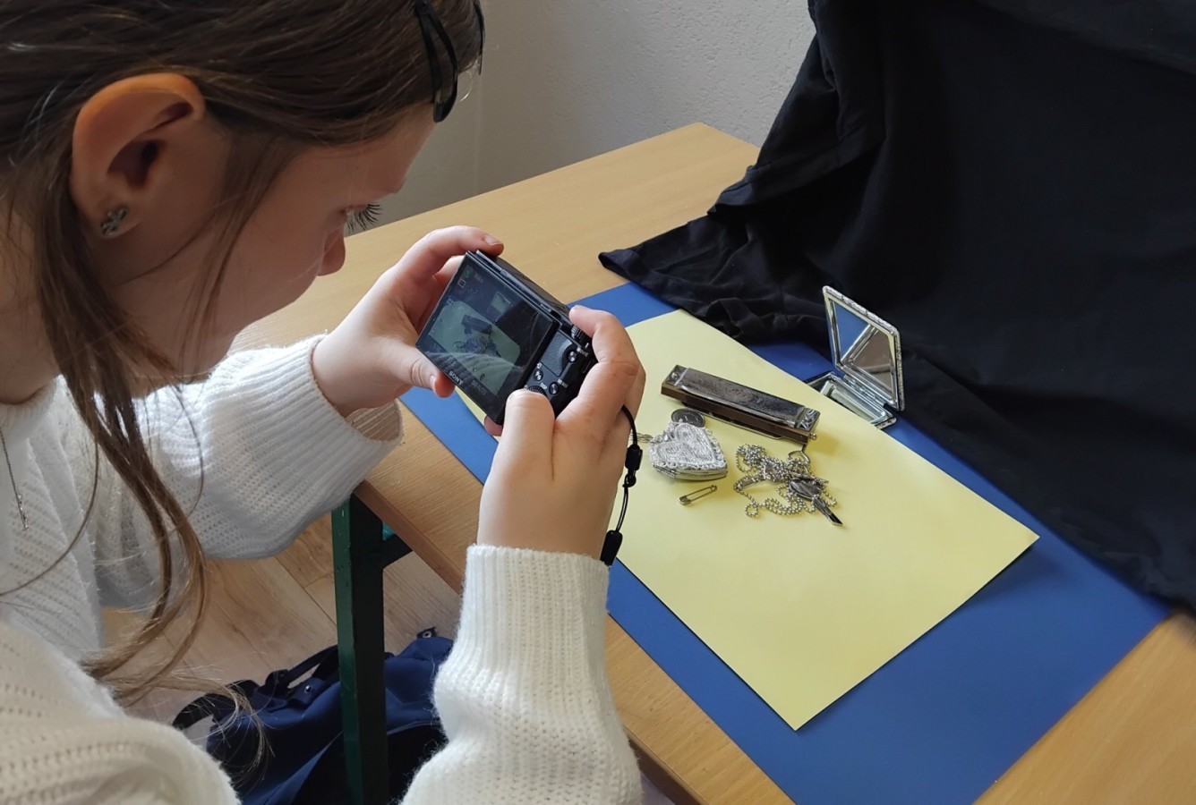 W klasach 7 odbyły się zajęcia z wykorzystaniem aparatów fotograficznych, w tym szkolnego, pozyskanego w ramach programu "Laboratoria przyszłości". Uczniowie mieli za zadanie ułożyć kompozycję z przyniesionych z domu przedmiotów, ładnie ją wyeksponować, zrobić zdjęcia z zastosowaniem różnych kompozycji, perspektyw, światłocienia i odpowiedniego kadru.