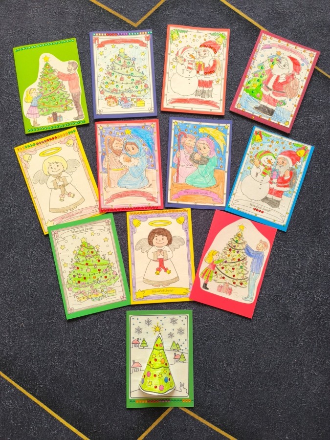 Uczniowie samodzielnie przygotowali kartki, które są wyrazem pamięci o ludziach schorowanych, którzy radosny czas Świąt Bożego Narodzenia spędzają w szpitalu.