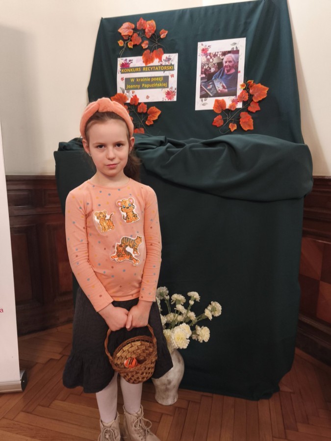 Z dumą informujemy, że dziś nasze uczennica reprezentowała szkołę w międzyszkolnym konkursie "W krainie poezji Joanny Papuzińskiej".