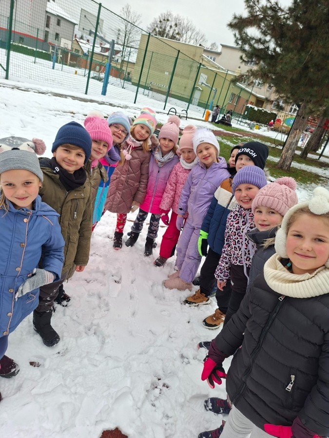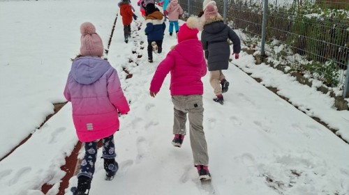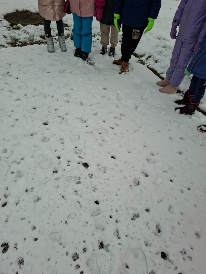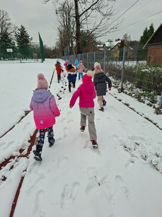 Świetliczaki wyszły na spacer w poszukiwaniu tajemniczych śladów na śniegu.